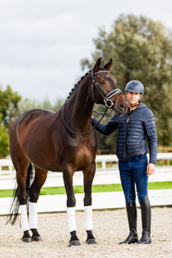 This gorgeous uphill built mare is an uncomplicated dressagehorse with beautiful gaits and lots of potential. Easy and light to ride and comfortable to sit with a great work- ethic. A real eye- catcher with lots of ability to collect